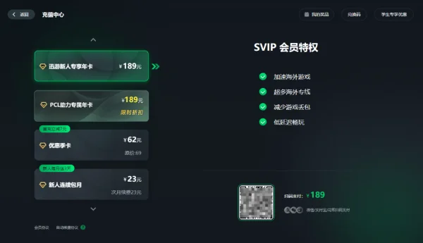 迅游加速器套餐参考: