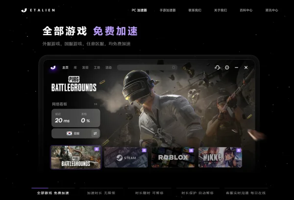 外星仔加速器,由星宇宙(上海)智能科技有限公司匠心研发,是专为游戏玩家量身打造的专业网络加速工具。品牌英文名 ETalien,始终致力于搭建玩家与游戏之间的高效连接桥梁,打造高性价比的优质加速利器,让游戏乐趣随时随地轻松畅享。