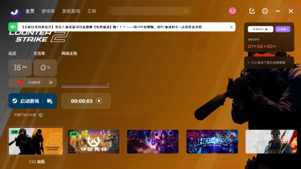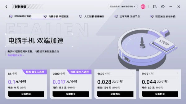随时暂停:支持加速时长一键暂停,玩家可根据自身使用节奏灵活管控时长,随心支配,灵活度拉满。分钟计费:采用透明公平的按分钟计费模式,按需消费、玩多久算多久,杜绝时长浪费,性价比十足。永久有效:账户内加速时长永久有效,长期闲置也不会过期,随开随用,时刻待命。